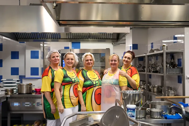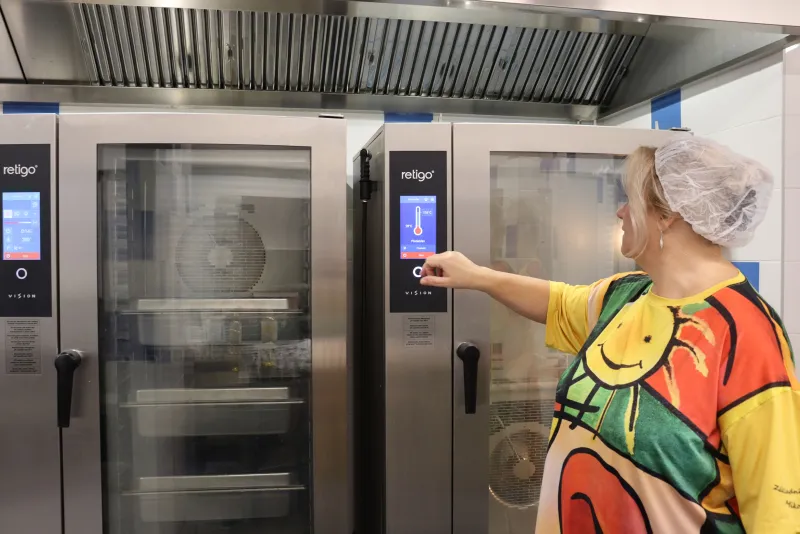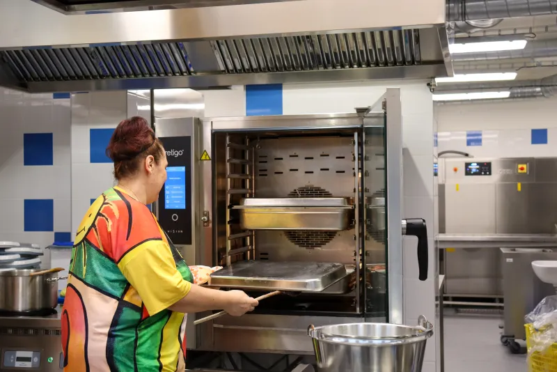 The team of cooks in the school cafeteria at Mikoláš Aleš Elementary School in Zlín prepares around 530 lunches a day served to pupils and school staff. Some children also come here for morning snacks. The newly renovated kitchen uses, among other things, three Blue Vision combi ovens, which have fully replaced electric ovens.